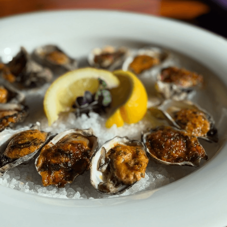 Local Kumamoto, broiled, dynamite spinach, tobiko, and aioli, or served raw, and a sauce trio