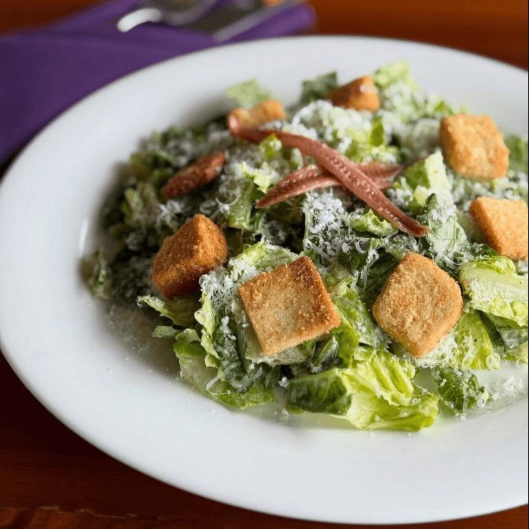 Hearts of romaine, parmesan, white anchovy, and croutons