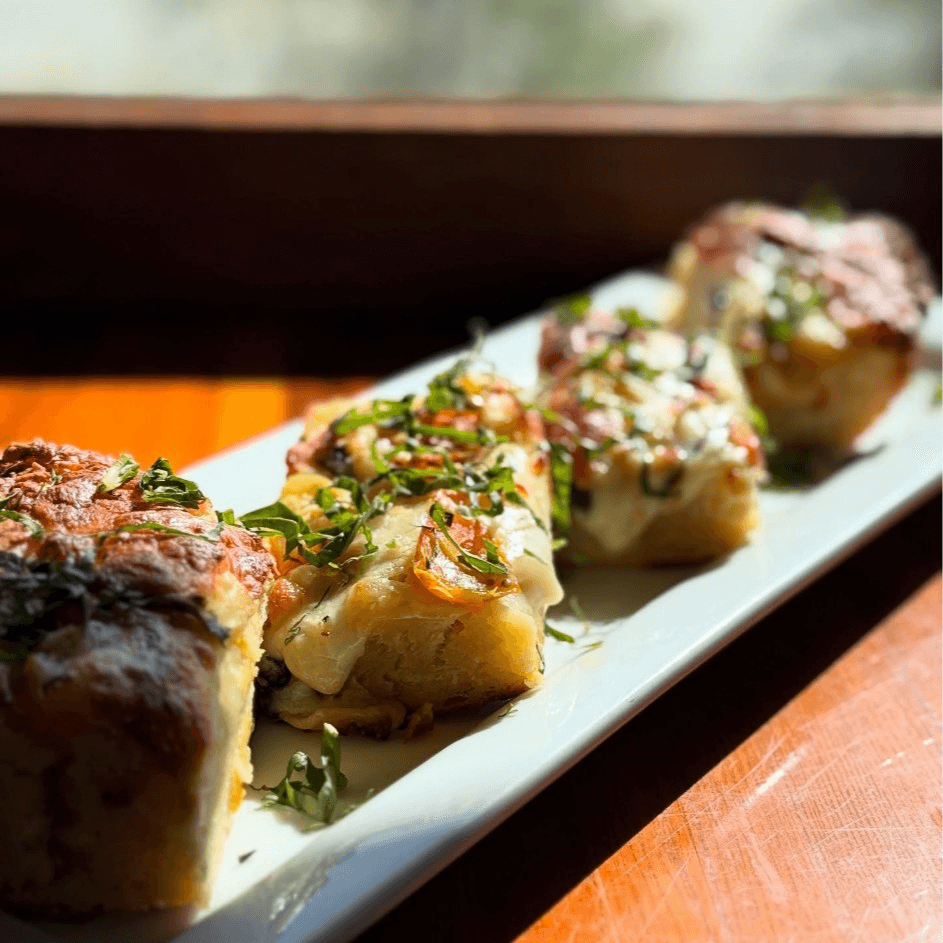 Roasted garlic, sun-dried tomato, fresh mozzarella, and basil