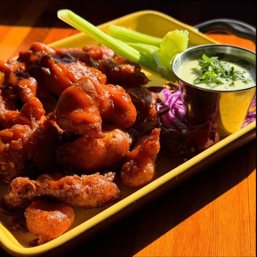 Roasted chicken, Buffalo sauce, and blue cheese dipping sauce
