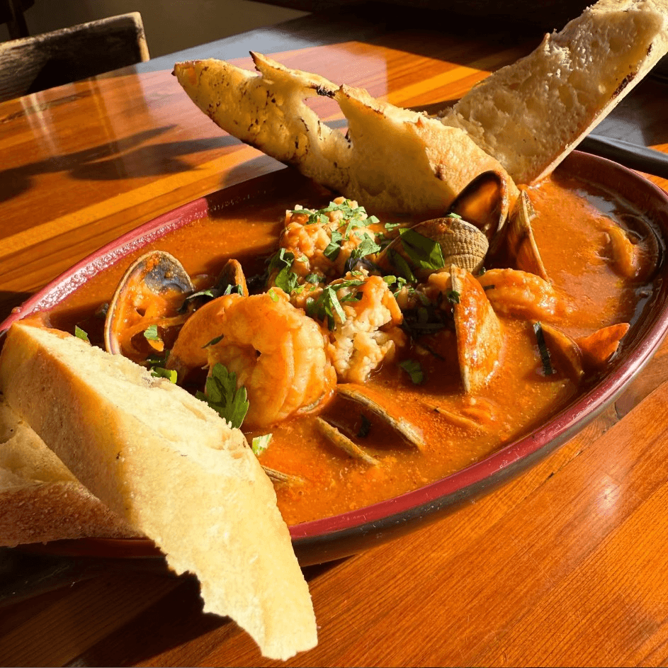 Dungeness crab, jumbo prawn, scallop, clams, fresh catch, and baguette